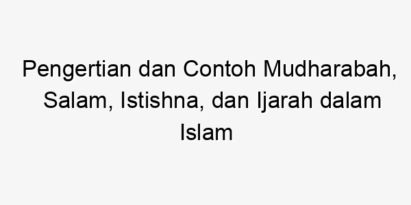 Pengertian dan Contoh Mudharabah, Salam, Istishna, dan Ijarah dalam Islam